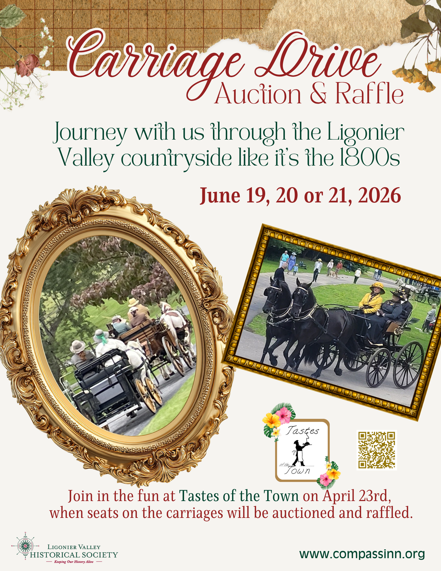Experience the beauty of the Ligonier Valley countryside the way travelers once did, with a leisurely horse-drawn carriage ride reminiscent of the 1800s. New this year, the Carriage Drive Auction & Raffle offers a one-of-a-kind opportunity to step back in time and enjoy a peaceful, scenic journey through rolling landscapes and historic surroundings.